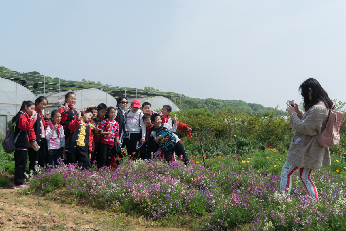 在前往花卉基地的路上,职梦营志愿者们一边介绍学校景观,一边向孩子们普及职业知识。在参观花卉基地时,志愿者彭延昭笑着问道“小朋友们知道有专门研究柑橘的职业吗?可以把柑橘培育成各种形状各种口味的哦!”六(2)班的马巧林举起手大声说“我以后想要把柑橘培育成苹果口味的!”有的小朋友指着一丛红色的植物好奇地问“这是什么花?”在得知是虞美人以后,她们蹲在花圃旁拿出纸笔认真地画下了植物的图画。