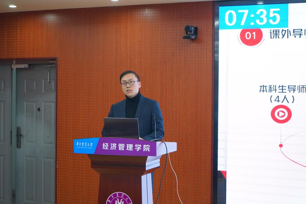 履行教书育人职责,明确目标,朝乾夕惕。李思呈认为,做好教学是富有挑战的,但做好教学同时也是幸福的。不忘初心,常教常新。熊巍始终强调联系的重要性,她认为要把与学生的沟通放在重要位置。“课程安排合理,逻辑性强,条理清晰”是同学们对蒋美琴的评价。她的课程重点明确,过程参与高,作业反馈及时,趣味举例,联系实际。以心动人,动人亦动己。杨志海以知识性理论性为主导,重在启发和探索,以心动人润无声,“双重对分”促成长。独创技术体系,共享成果。周晶教学内容围绕学生困难展开,让学生更好地进入课堂,学有所用。问题启思维,灵动显芳华。肖华芳强调教随学定,学随思定,教学相长,善谋善思。兴趣促动力,科研提海拔,实践增厚度。陈通注重兴趣的培养,同时注重理论与实践相结合。思政融入,立场决定高度。张泽宇坚持教学相长,通过教研促进教学,一直坚信态度决定未来。君子务本,本立道生。施龙中勇于面对教学的平凡,自身的不足,进而勇于创新突破,明确目标与要求。通过“三让三进”的教学理念,池韵佳让学生自己表达,自己动手体验,自己推断结论,并用乐高拼搭进课堂,前沿科技进课堂,行为实验进课堂实现教学相长。