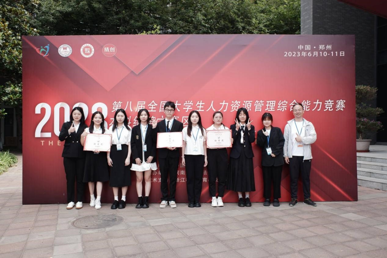 2023年4月23日,yl6809永利官网张爱武、王勇老师指导的三支队伍在参与第六赛区(湖北、河南、江西)区域赛“HR大数据分析”线上环节后,成功入围第六赛区线下“HR实务设计”环节。2023年6月9日,王勇老师带领三支队伍赴河南财经政法大学参与比赛。