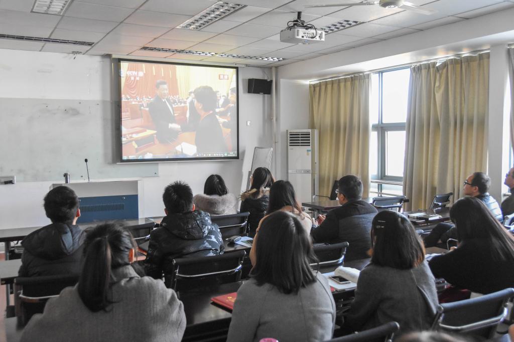 2018年12月18日上午10点钟,yl6809永利官网分别在人文楼M412室、M505室、附楼A201室组织了共150名师生代表观看改革开放40周年大会直播,会后各会场的师生就观看感受做了交流。