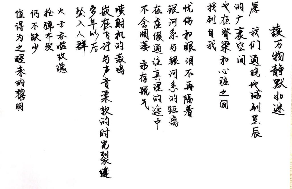 小编第一次看见王师姐,就想到这样一句话,“腹有诗书气自华”。王瑜洁从本科开始就有写散文诗的习惯,不仅她自己写诗,她的师门也有写诗的传统,导师何可在钻研科研之余也会赋诗几首。2019年王瑜洁获得第三届“诗韵华农”团体赛的诗词文化优秀团体奖和第十届殇集暨思语诗赛“新诗组”优秀奖。她的诗词都透露着乐观和积极的生活态度,就如,在她写的《读万物静默如迷》这首诗里那样,‘火舌吞噬玫瑰,枪弹齐发,仍不缺少,值得为之醒来的黎明’。纵使生活里有再多的黑暗,我们也终会迎来黎明之时。