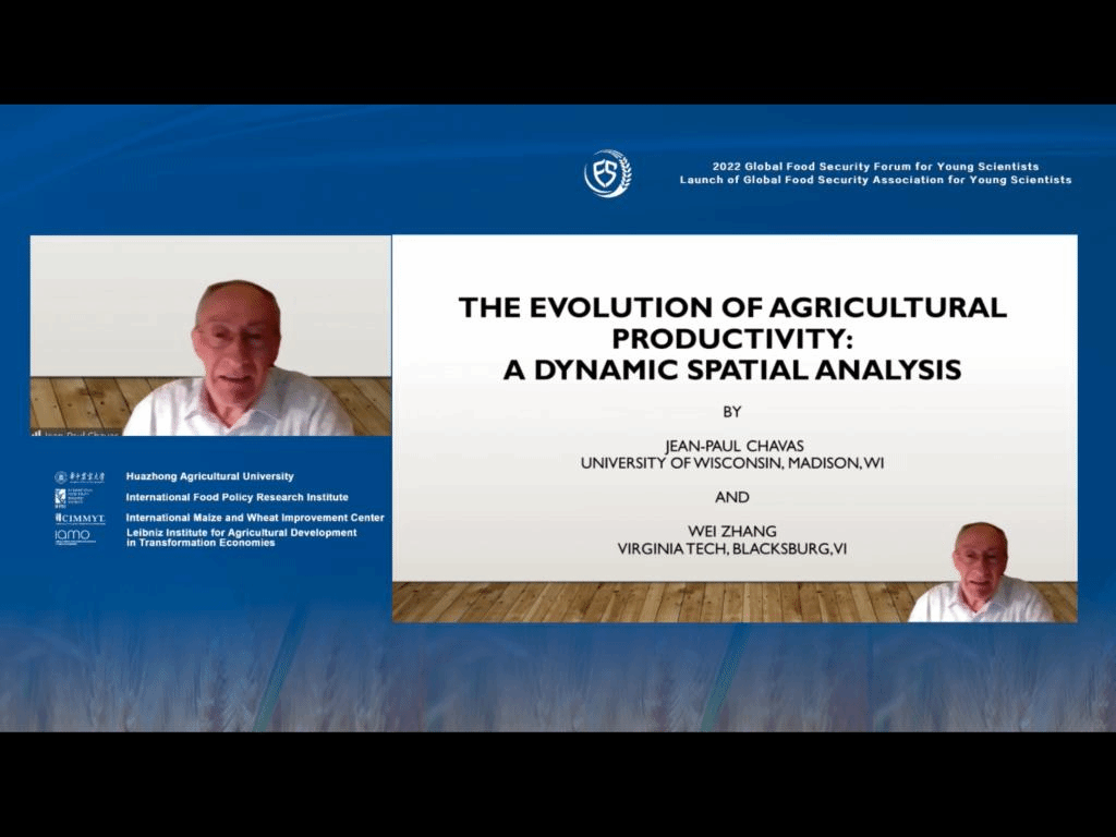 Jean-Paul Chavas教授谈到,气候变化对世界粮食生产和粮食安全的影响日益受到社会各界的广泛关注。为了准确衡量气候变化给世界不同国家和地区农业发展所造成的后果,他在最新的研究中分析了降水与气温变化对不同纬度地区的农业全要素生产率的影响。他指出,中国农业生产力在1976年至2016年间的增长幅度显著高于世界上其他国家和地区,这一变化主要归功于中国持续推进的农业生产要素改革和农业生产方式优化。他重点阐释了气候变化可能导致的农业生产力降低问题以及通过加强农业技术创新来抵消这一负面影响的政策着力点。