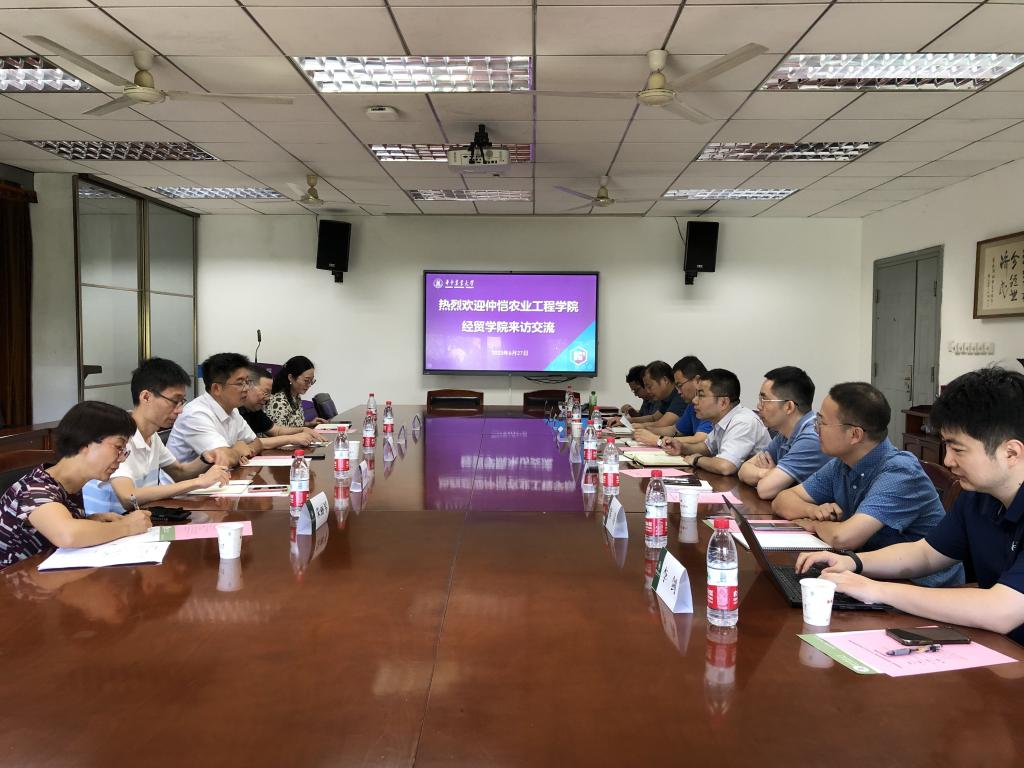 6月27日上午,仲恺农业工程学院经贸学院院长方凯教授、管理学院齐友发教授、经贸学院黄灏然教授、李争副教授、研究生教学秘书朱丽琴老师一行来永利官网调研交流。yl6809永利官网院长李谷成、副院长罗小锋、颜廷武、农经系主任熊涛、副系主任何可、经济学系主任曾光、经济学系党支部书记李剑等教师参加座谈。副院长罗小锋主持会议。