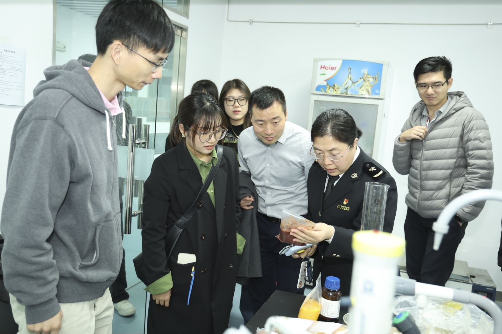 武汉海关技术中心赵博士详细介绍武汉海关的职能和组织结构,带领师生参观检验中心实验室。参观结束后,海关技术中心与师生进行面对面的专题座谈会。研讨会由海关技术中心刘秀清主持,海关技术中心郭明星主任,海关食品处胡修军处长等参与座谈交流。