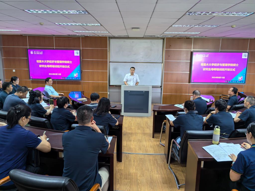 塔里木大学经济与管理学院书记蒋志辉致以感谢,对学院提供的培训支持表示感谢。他希望各位学员在学习交流中珍惜学习机会,提升研究生培养能力,并借此机会促进两院研究生导师彼此间的交流与合作。