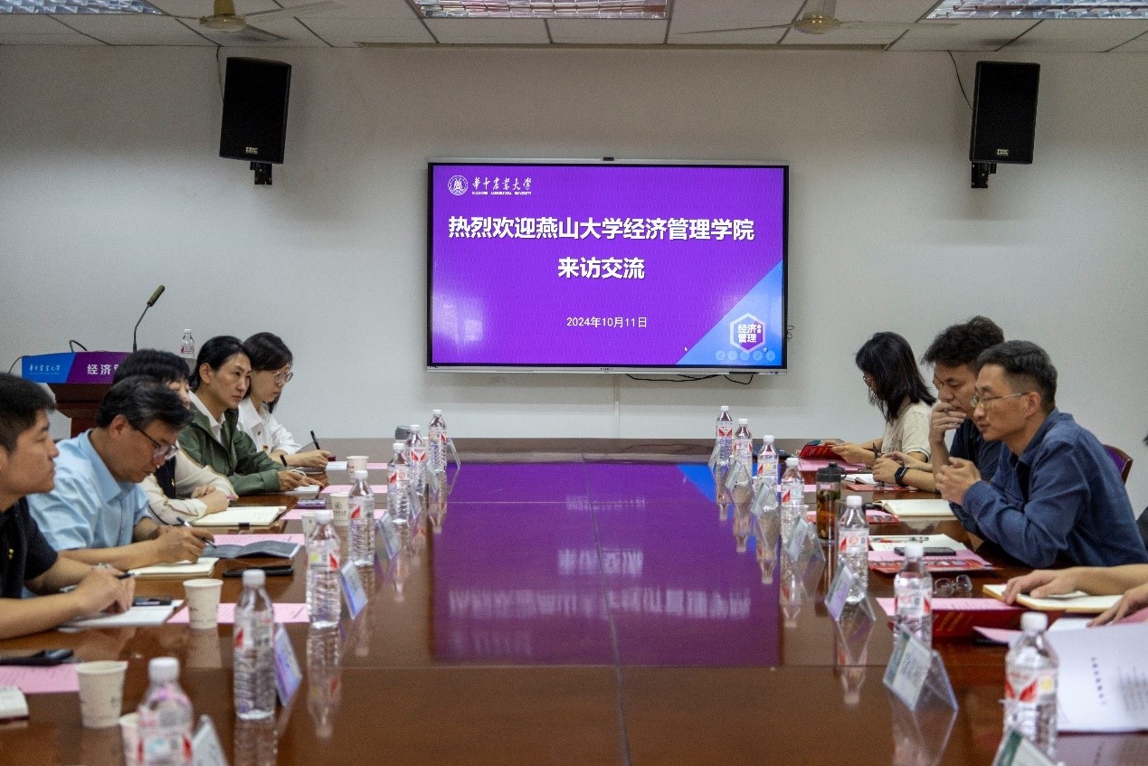 10月11日上午,燕山大学yl6809永利官网党委书记张振华一行9人来永利官网围绕党建工作开展调研交流。yl6809永利官网党委书记向晋文、党委副书记刘三宝、农经系教工党支部书记杨志海、湖北农村发展研究中心研究生第一党支部王安邦及本科生辅导员参加座谈会,会议由刘三宝主持。