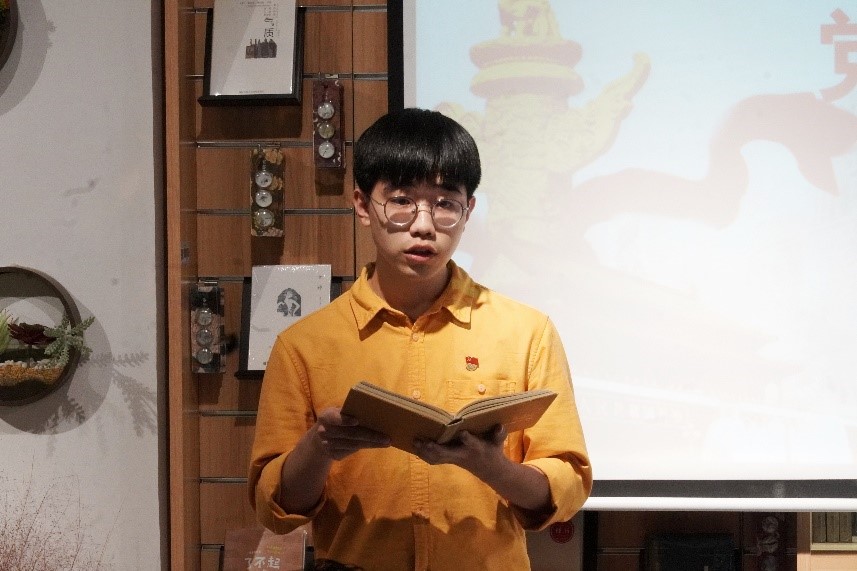 17级张鸣同学带来了《红岩》的读书分享,“红岩精神是老一辈革命家为我们留下的宝贵精神财富,它不仅是中国共产党优良传统和作风的体现,还是中华民族精神的充分展示和伟大升华。任何时候、任何情况我们都要像红岩烈士那样保持至真至诚、无怨无悔的坚定和执着,用崇高信仰铸就时代忠诚。”18级冯彦力同学结合《西行漫记》一书,表达了他对脚下这片土地的热爱,“唯有信仰不可放弃”是他最真挚的感悟。