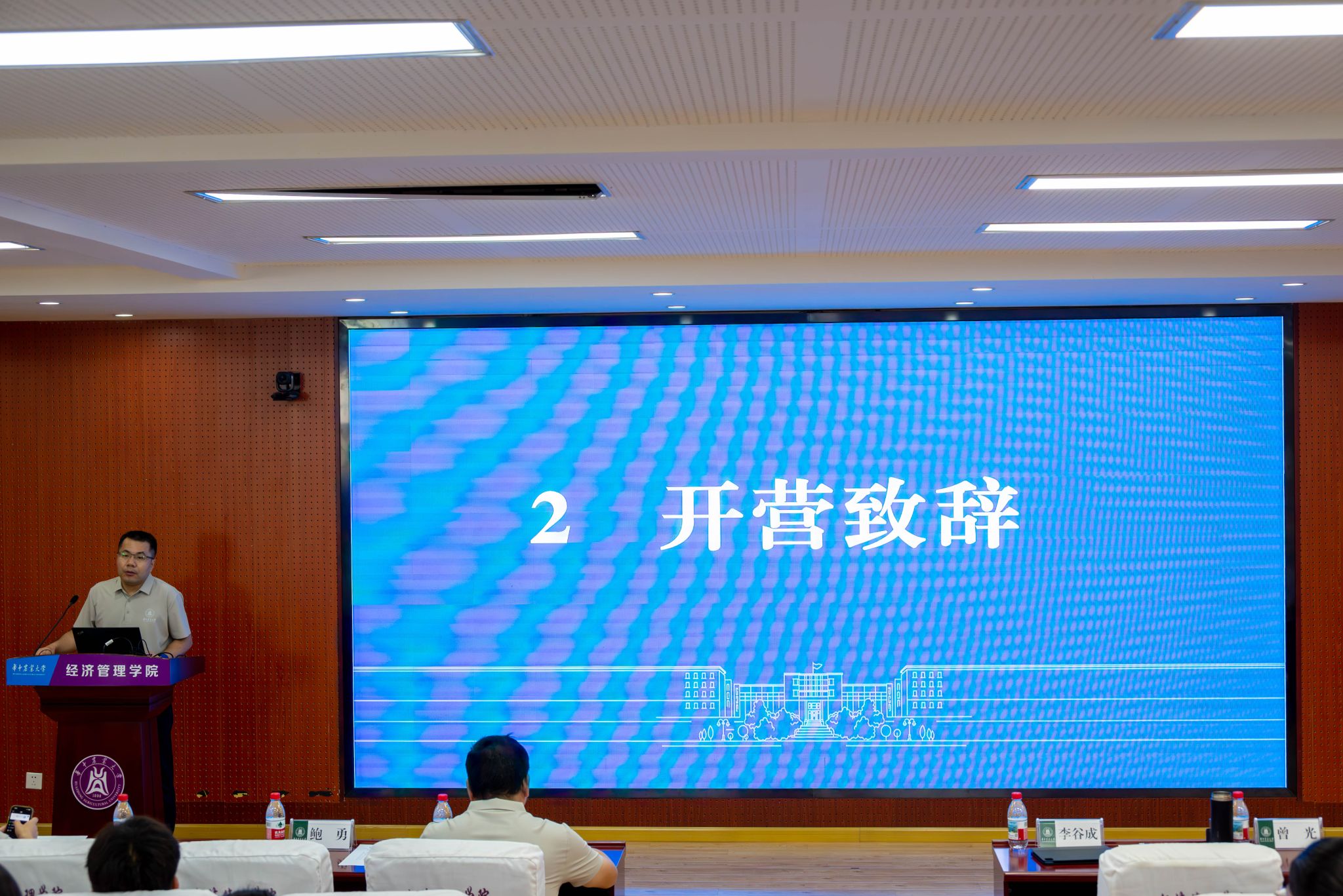 开营仪式后,院长李谷成向同学们讲解了校情、院情及人才培养相关内容,李凡、曾光、池韵佳三位老师分别就农业经济管理、应用经济学及工商管理学科硕士点进行了详细介绍。