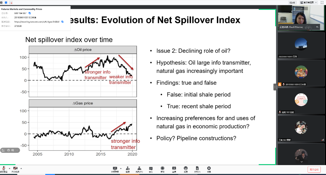 核心提要:2021年7月17日晚7:30-9:00,美国西弗吉尼亚大学农经系副教授Xiaoli L. Etienne博士做客达尊讲坛第383期,为师生们带来题为“页岩气技术革新、油气价格与美国钻探行业行为”的线上学术讲座,并在此前受邀讲授学院暑期全英文课程《期货市场与商品价格》。此次讲座由yl6809永利官网李谷成教授主持。