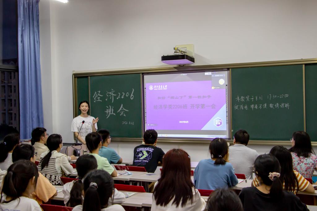 面对经济2202班的新生们,张俊飚教授结合经济学科特色,强调在大学的学习和生活中需要转变思维,培养经济头脑与风险意识。他希望同学们将专业学习放在首要位置,充分利用学校为大家提供的学习平台与资源,磨砺专业本领,规划发展道路。齐振宏教授则从“为什么读大学”“如何才能读好大学”“大学里究竟学什么”三个维度引导学生处理好目标与计划、想法与做法的关系。