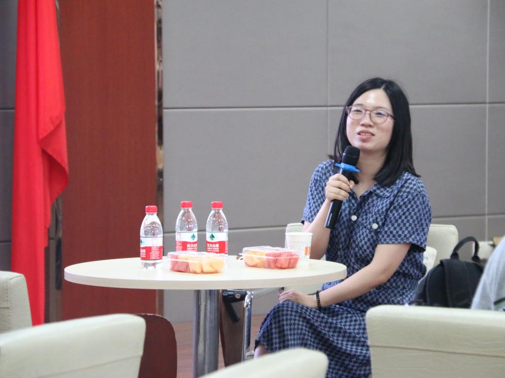 胡欣妍以自己在新闻采写中的三个故事为切入点,分享自己在新闻稿写作中的经验。她谈到,通过描写采访时得到的细节,在撰稿时努力做到让读者身临其境。“在采访时要努力挖掘人物身上的特点,才能写出更加令读者身临其境的新闻稿”。同时,她认为,生动真实的故事更加深入人心。
