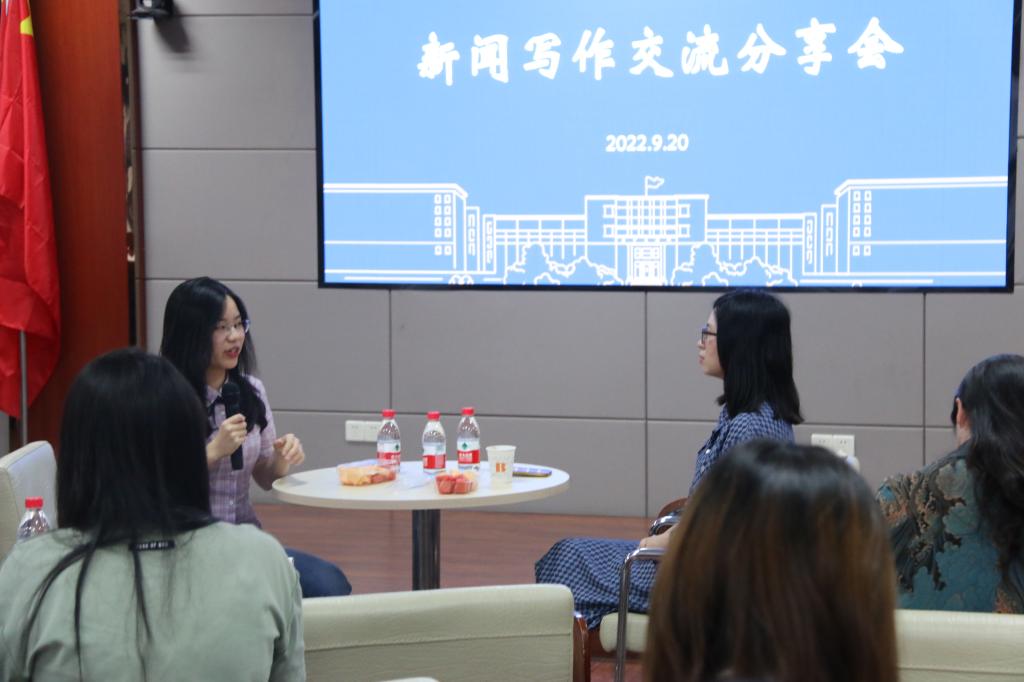 同时,王舒娴从新闻写作实例出发,通过大量的稿件阐释新闻的产生。她谈到,“新闻写作要多事实少评论,多客观少主观”,在写作新闻的时候要注意新闻要素的6个“W”和新闻各个要素的完整性。“有故事,有趣味,有现场感,有人情味,多用大众语言才能打造一篇好的新闻稿”,交流会现场,她强调在写新闻时要注重“一事一报”和“有形呈现”。