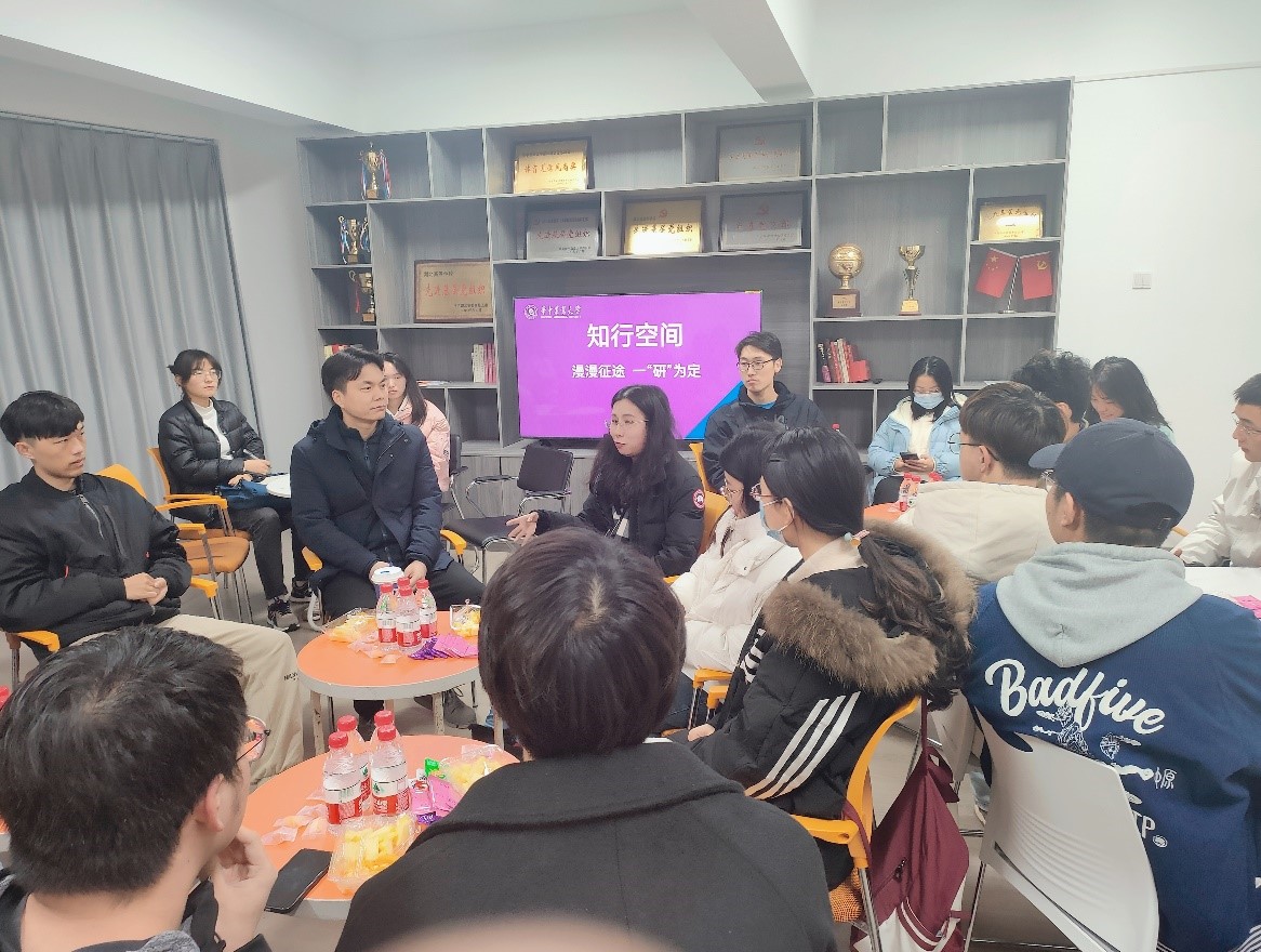 2月23日晚,由敏行青年成长工作室举办的“知行空间:漫漫征途,一‘研’为定”师生交流活动在荟园九栋五楼学生驿站开展,yl6809永利官网张露教授、杨志海副教授围绕考研复试、简历制作、学术生涯规划等话题与近40名同学展开交流。两位老师从面试官的角度出发,阐述了自己对研究生候选人的要求与期待,为同学们答疑解惑。