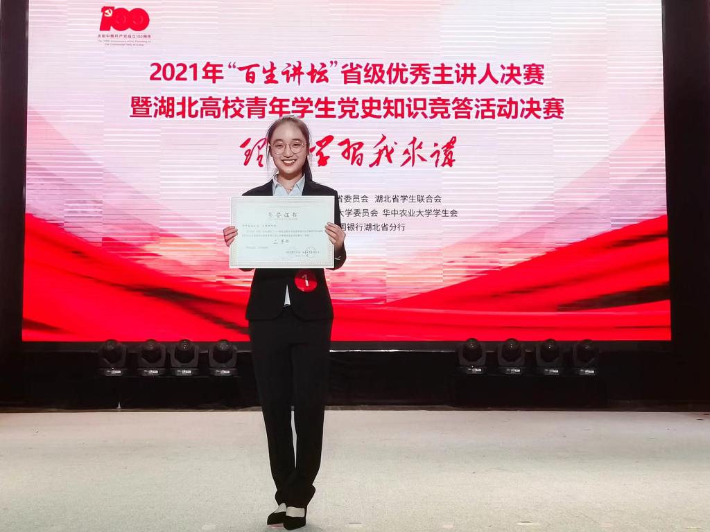 6月19日下午,2021年“百生讲坛”省级优秀主讲人演讲比赛决赛在永利官网成功举行,来自全省各大高校的十位选手依次上台进行了党史学习主题演讲和“理论学习一点通”展示。农林经济管理1901班的范章珂同学作为永利官网唯一参赛选手,以题为《党的名片》的精彩演讲荣获三等奖,成为省级“金牌主讲人”。