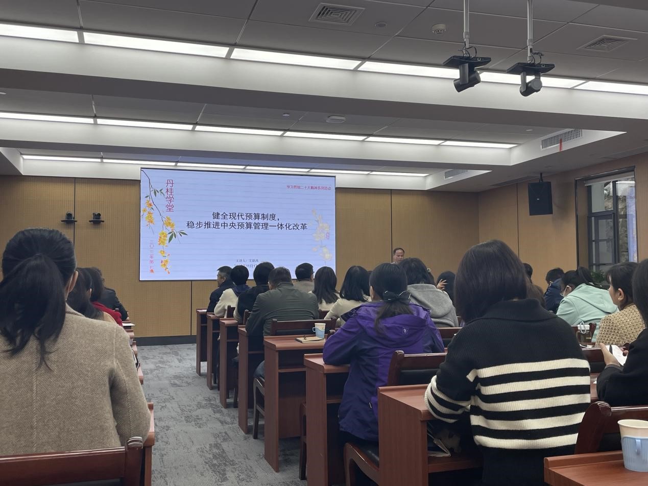 11月17日,财资部、会计系教工党支部、审计室、后勤财务于干训楼一楼3号报告厅开展第一场联学活动,活动主题为《健全现代预算制度,稳步推进中央预算管理一体化改革》,会议由王建鸿副校长主持。