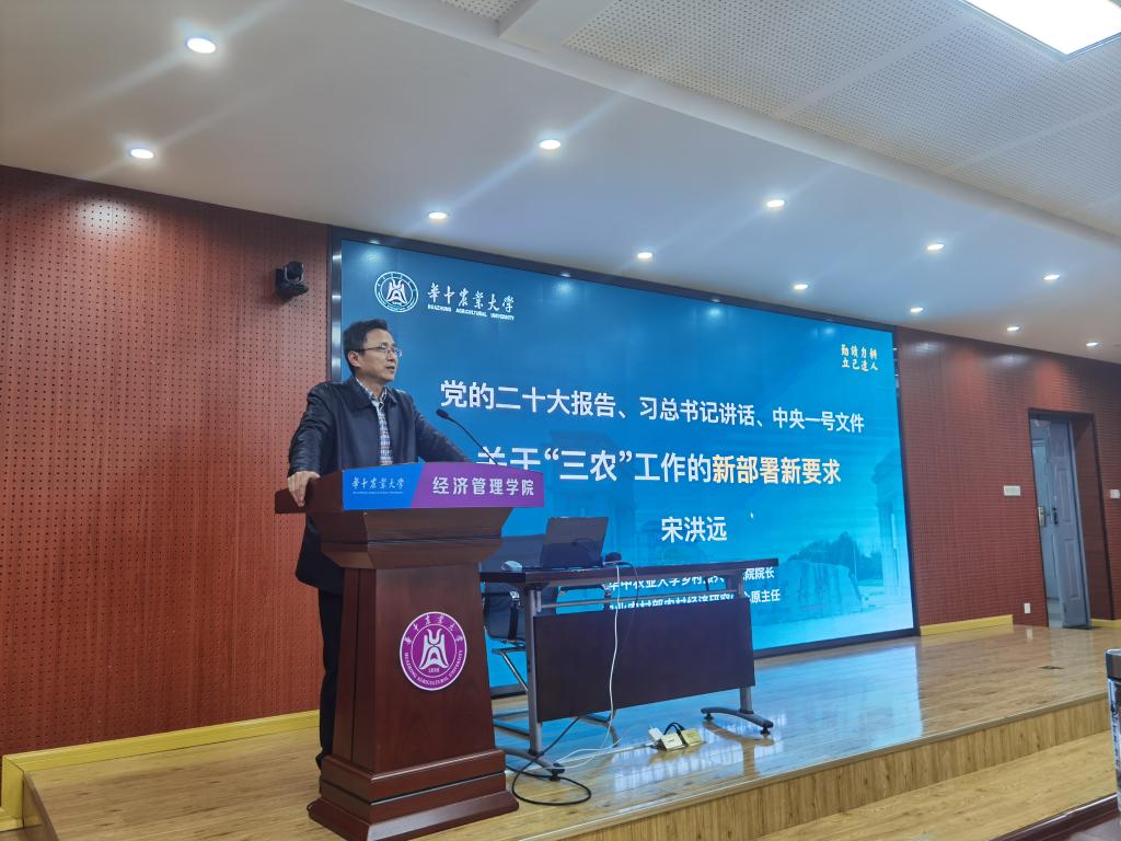 3月9日下午,永利官网乡村振兴研究院院长宋洪远教授应邀作学习党的二十大和2023年中央一号文件精神“精读精讲”专题辅导报告。全院教职工及部分研究生听取了报告。报告会由学院党委书记陈国顺主持。