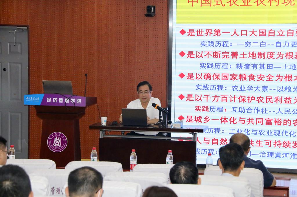 6月2日上午,学院在人文楼M501开展党委理论学习中心组(扩大)集体学习,邀请中国农业大学国家农业科技战略研究院院长、国家农业科技发展战略智库联盟执行理事长高旺盛教授以“建设中国特色农业强国若干战略问题讨论”为主题作专题辅导报告。校长李召虎教授,学院党委委员、教工党支部书记、系主任及教师和研究生参加学习。报告会由院长李谷成主持。