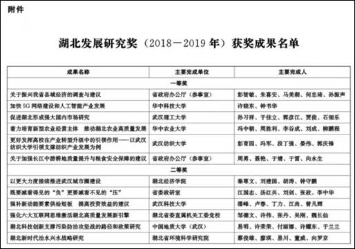 1.冯中朝教授先后赴黄冈市、英山县、罗田县、孝感市、洪湖市、襄樊市等十多个县市区宣讲乡村振兴战略实施对策与路径;多次赴多家国家级和省级农业产业化龙头企业和家庭农场、农民合作社进行人员培训并帮助有关企业制定发展规划。此外,冯中朝教授还主持了第三届湖北乡村振兴产业发展大会,所撰写成果《着力培育新型农业经营主体、推动湖北农业高质量发展》获得湖北发展研究奖一等奖。