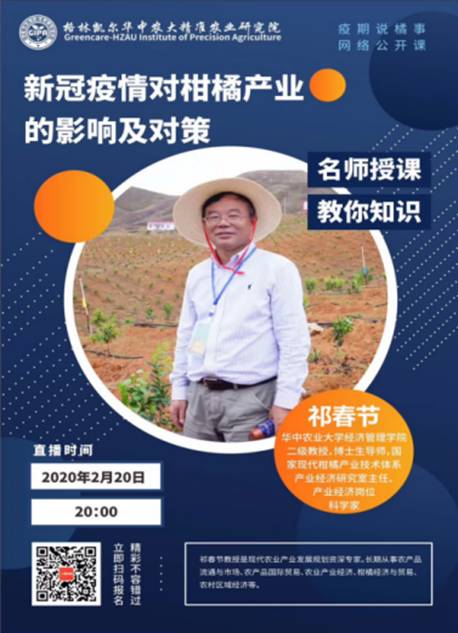 ②新冠肺炎疫情爆发以后,祁春节教授参加了“疫期说橘事”系列网络免费公开课,详细分析了新冠肺炎疫情对我国柑橘生产、流通及加工等产业链各个环节的影响,以及疫情影响下柑橘产业当前存在的突出问题,并提出了具有针对性的对策与建议。本次公开课在线指导了柑橘从业人员复工复产,对保障柑橘生产发挥了重要作用。熊航教授与丰农智慧公司联合推出的抗击疫情微信小程序设计“在线调查”专栏的调查问卷,并依托学校的华中三省农村固定观察点开展疫情影响及应对措施电话访谈调研,为研究重大突发事件对“三农”影响深度的把握提供数据支持。