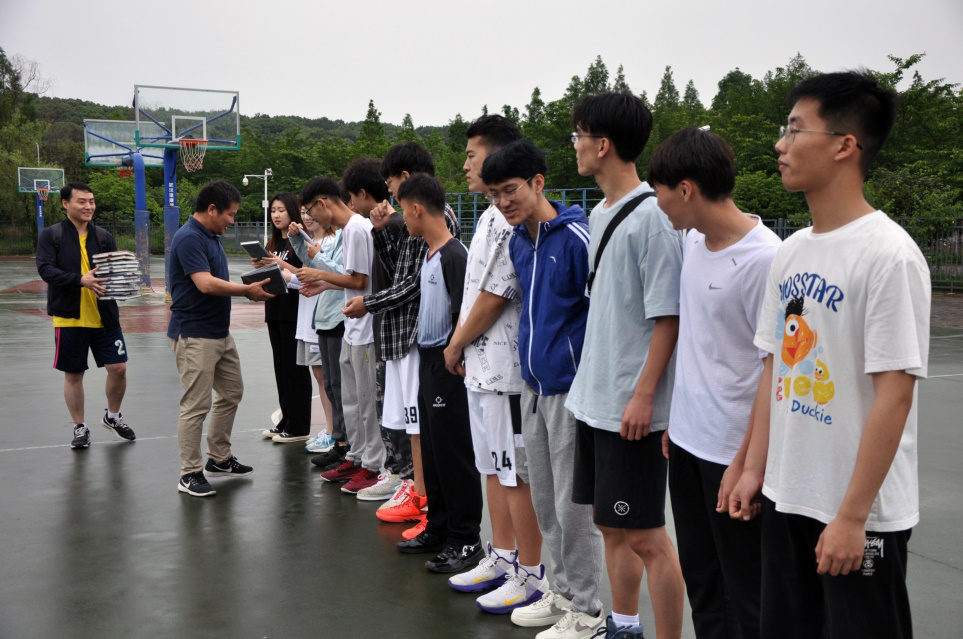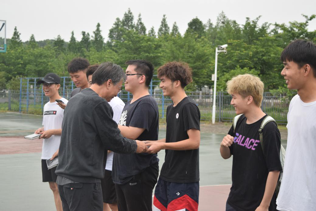 在篮球赛结束之后,由高韧老师、系主任包玉泽老师及系支部书记李春成老师为参加本次活动的教师及各年级的同学们颁发印有“yl6809永利官网市场营销系”的笔记本作为纪念。