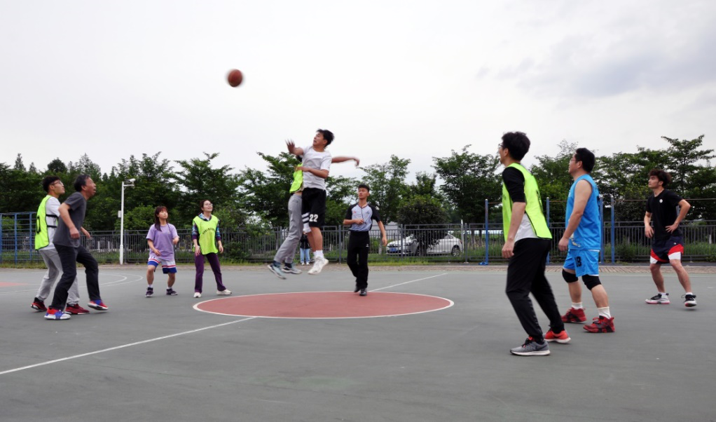 在活动过程中,场上选手斗志昂扬,场下观众呐喊助威,展现出课堂之外学生们与老师们之间的良性互动。
