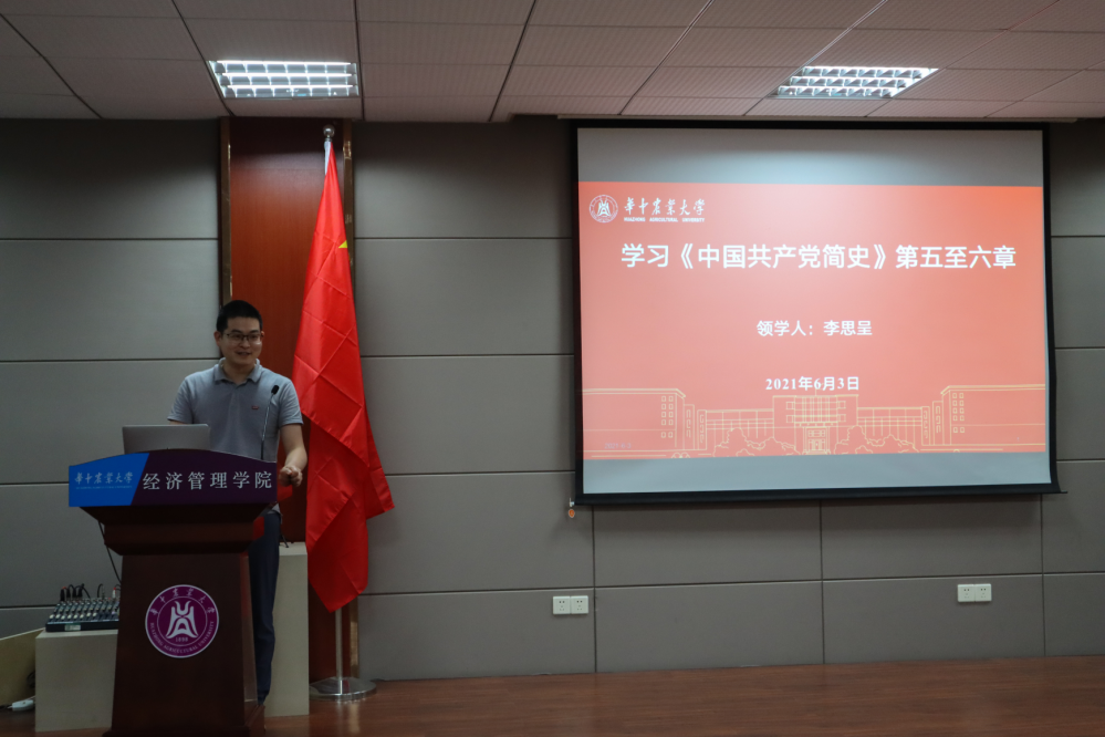 随后,李思呈老师和陈瑶老师带领大家学习了《中国共产党简史》第五至七章,全面阐述了这三章的重点内容,强调“学党史、悟思想、办实事、开新局”,党员务必牢记,务必践行。最后吴伟荣老师带领大家学习了《陈宝生部长在部党组理论中心组集体学习研讨扩大会暨直属机关党史学习教育专题读书班结业式上的讲话》,陈宝生部长提出教育系统开展党史学习教育要坚持一个根本、把握一个定位、做到一个结合、打造一个品牌,深刻认识新中国教育事业的巨大变化,准确把握教育发展的思想经验,深入汲取教育报国的精神力量,深刻感悟教育的初心使命,在深入、务实、重实效上持续发力,为加快推进教育现代化、建设教育强国、办好人民满意的教育作出新的更大贡献。