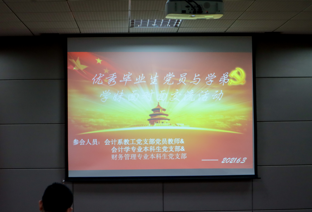 6月3日下午,优秀毕业生党员与学弟学妹面对面交流活动于人文楼M412成功开展,本次活动由会计系教工党支部、会计学专业本科生党支部和财务管理专业本科生党支部联合策划。会计学专业本科生党支部宣传委员喻凡同志主持本次活动,交流会在全体党员奏唱国际歌中拉开序幕。