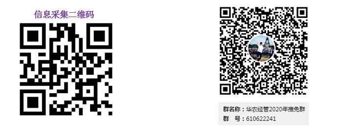 9月22日18:00之前扫描下方二维码填写推免申请信息采集表,同时请实名扫码进入“华农经管2020年推免群”。